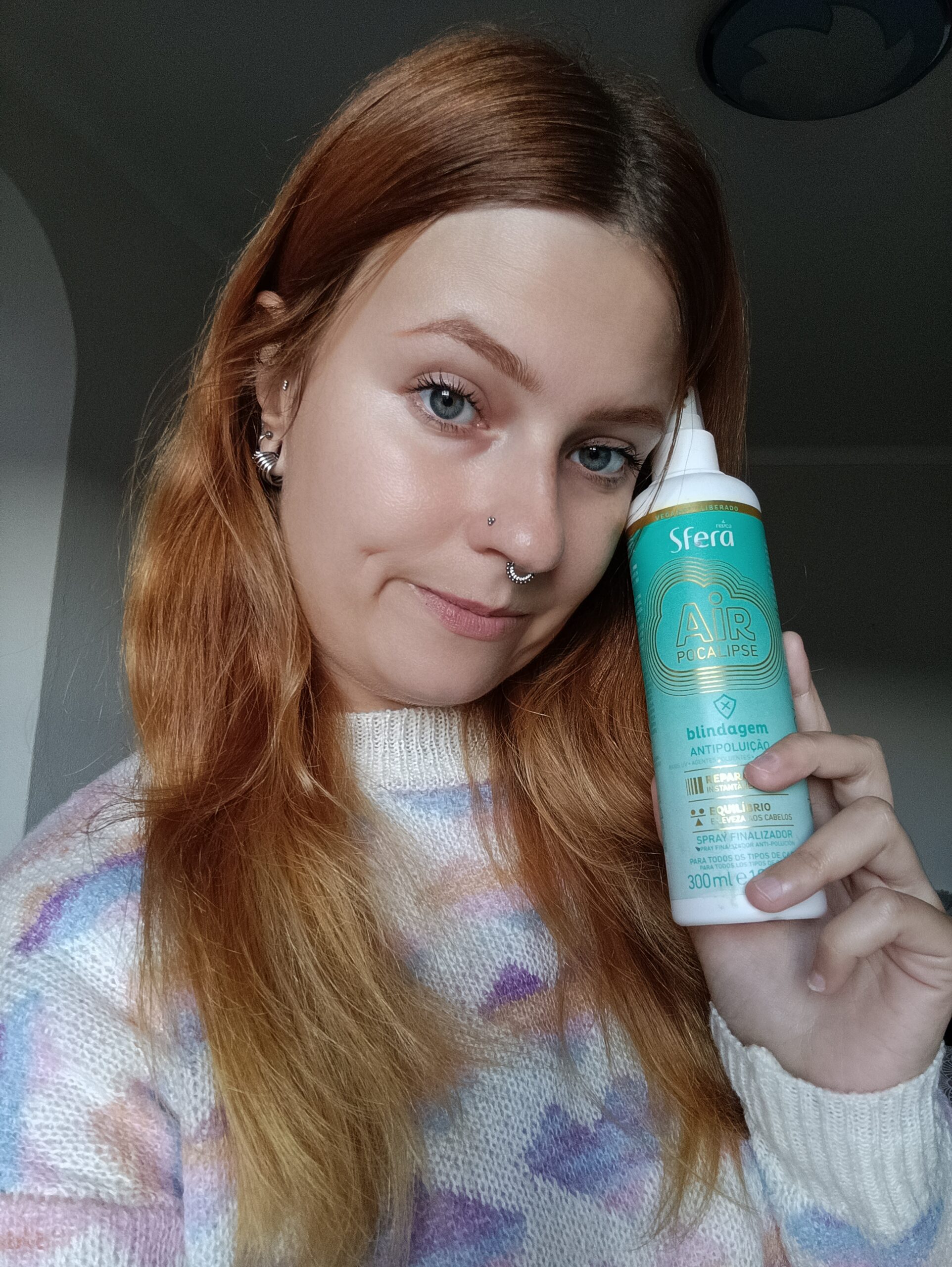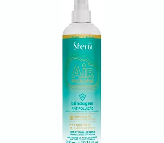 Hoje falo sobre o Nazca Sfera Airpocalipse Spray Antipoluição. É um spray finalizador que foi desenvolvido para proteger os fios contra os efeitos nocivos da poluição ambiental. Ele cria uma barreira que mantém poluentes longe dos fios, ajudando a preservar a saúde do cabelo. Promete devolver leveza aos fios sem pesar, ideal para quem usa finalizadores diariamente e promove condicionamento imediato, deixando o cabelo mais macio e alinhado.